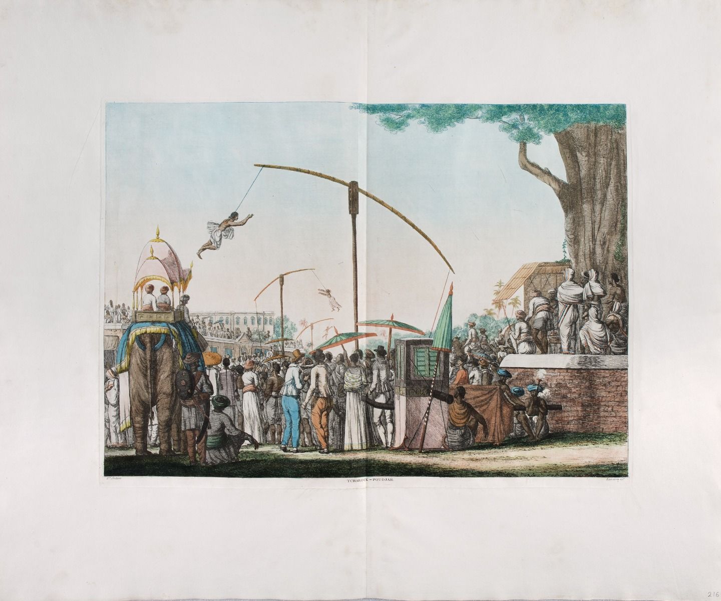 F. B. Solvyns Tcharok poudjah [carak puja] size 14.1 x 19.2 in. / 36.0 x 49.0 cm. medium Hand-tinted etching on paper pasted on paper |