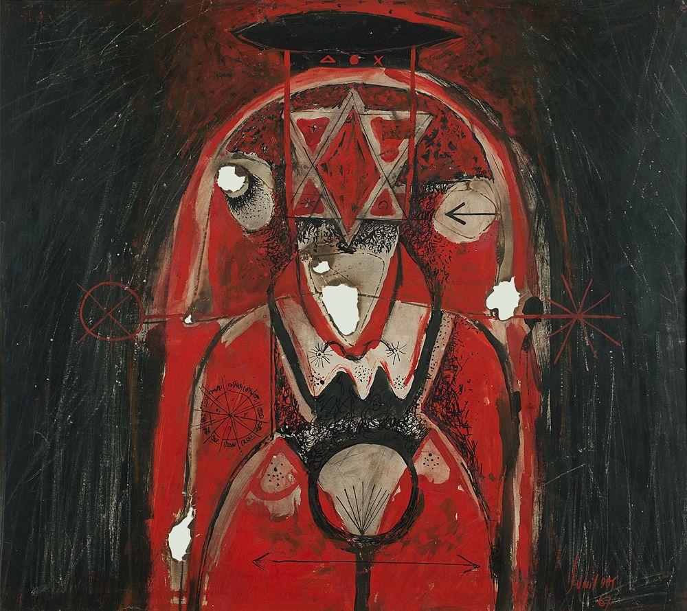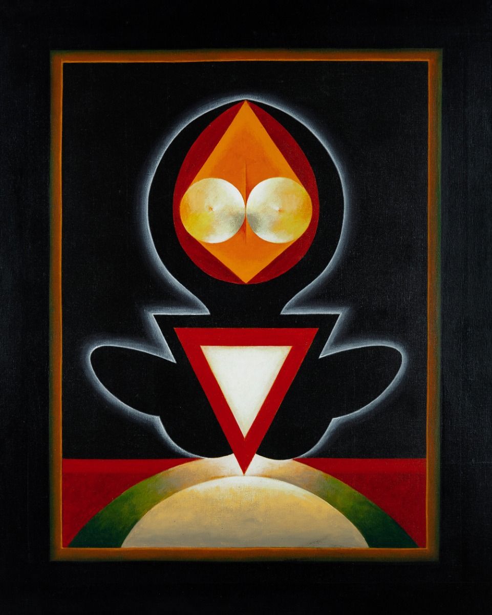 Within India, it spearheaded a fresh search into its ancient roots to offer succour to a bruised humanity, and out of this churning emerged a bold and significant language of modern abstract art that has been described as neo-tantra. Using elements of symbology, light, sound, word, consciousness, energy, and pro-creation, Indian modernists—in search of an abstract lexicon to call their own—responded with a range of ideas that have been represented here by G. R. Santosh, Satish Gujral, Shobha Broota, Biren De, Sohan Qadri, Sunil Das and P. T. Reddy. Their works can be interpreted as a visceral response to tantra with secret meanings that make these incandescent paintings glow with an otherness that is difficult to overlook. These compelling paintings expound the path to enlightenment and liberation in a language that is exciting, modern—and India