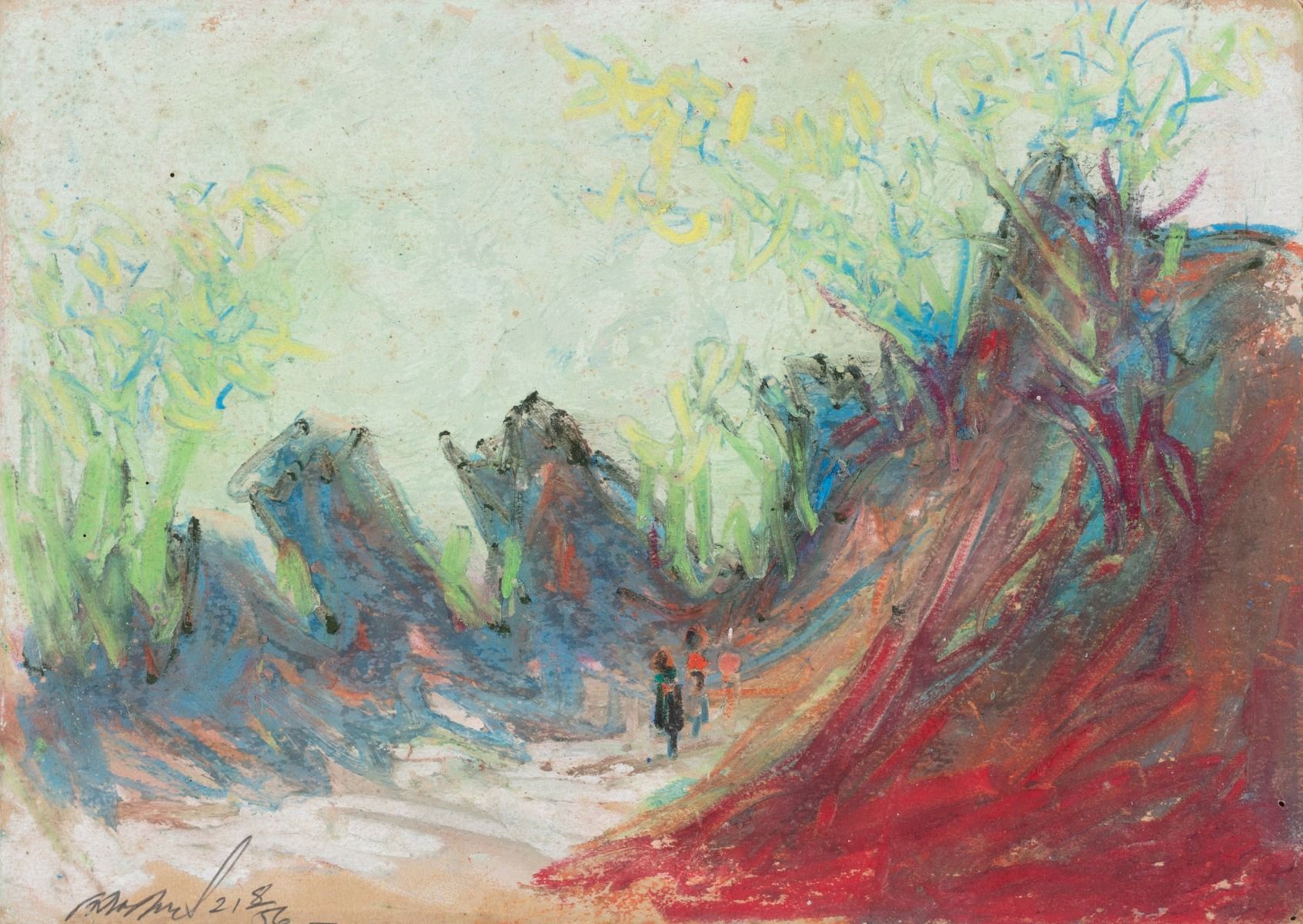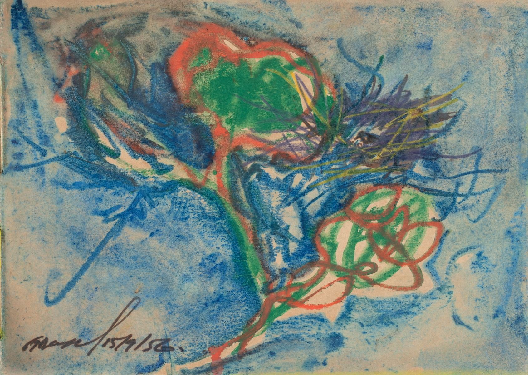 Gouache, pastel, ink on paper