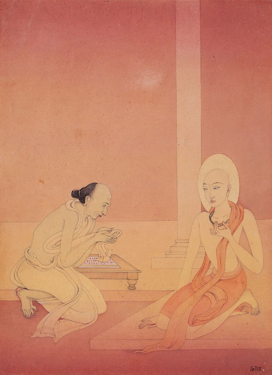 Kshitindranath Majumdar Sri Chaitanya & Vasudev Sarvabhauma size 14.0 x 10.0 in. / 35.6 x 25.4 cm. medium Watercolour wash on paper |
