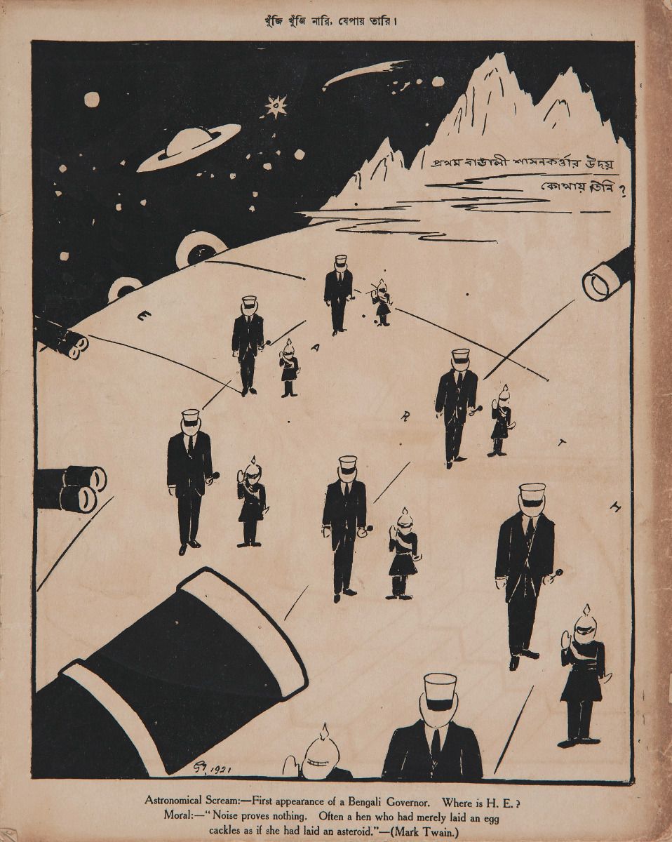 From Reform Screams Gaganendranath Tagore Gaganendranath Tagore’s caricatures serve as a landmark in the history of Indian art. Armed with eclectic sensibilities, razor sharp wit, and a flair for self-critique and reflection, Gaganendranath takes to the medium with extraordinary passion and dexterity. Between 1915 and 1921 he published three folios of caricatures, Realm of the Absurd (Adbhut Lok), Virup Vajra, and Reform Screams (Nabo Hullod). Copies of these folios have become exceedingly rare. From exaggerated facial features to exaggerated situations, Gaganendranath cleverly highlights the absurdities and contradictions present in society, inviting viewers to question the status quo and consider the possibilities of reform.