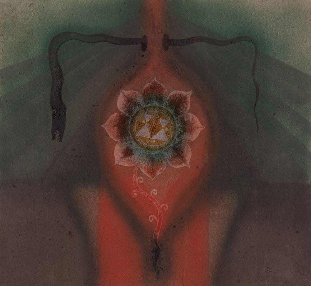Within India, it spearheaded a fresh search into its ancient roots to offer succour to a bruised humanity, and out of this churning emerged a bold and significant language of modern abstract art that has been described as neo-tantra. Using elements of symbology, light, sound, word, consciousness, energy, and pro-creation, Indian modernists—in search of an abstract lexicon to call their own—responded with a range of ideas that have been represented here by G. R. Santosh, Satish Gujral, Shobha Broota, Biren De, Sohan Qadri, Sunil Das and P. T. Reddy. Their works can be interpreted as a visceral response to tantra with secret meanings that make these incandescent paintings glow with an otherness that is difficult to overlook. These compelling paintings expound the path to enlightenment and liberation in a language that is exciting, modern—and India