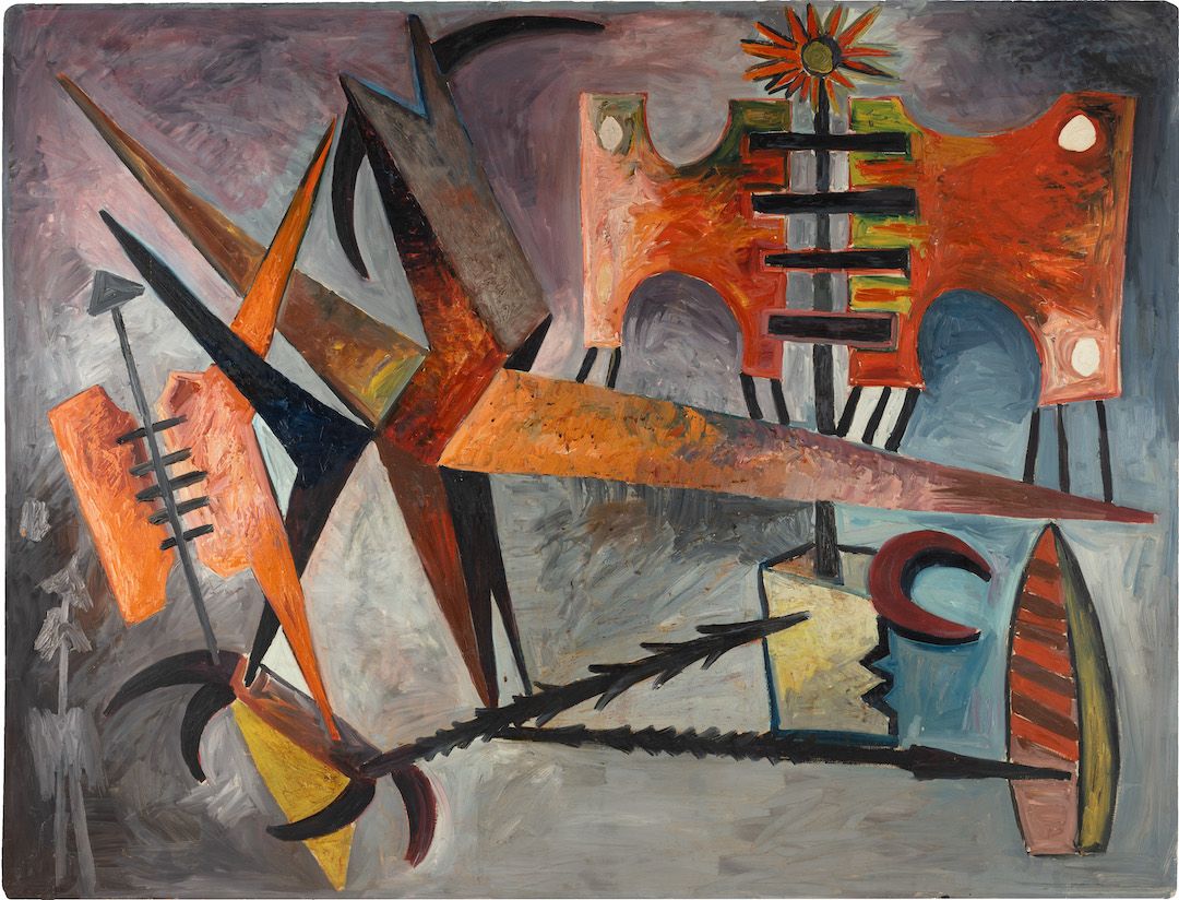 Among the works on view are a superlative family portrait by Raja Ravi Varma—widely recognised as his first ever commissioned painting, making it the first painting ever of modern Indian art; rare works by other National Treasure artists such as Abanindranath Tagore, Nandalal Bose, and Sailoz Mookherjea; lyrical poetic compositions by masters who would go on to be leading lights of art in Pakistan—Allah Bux and M. A. R. Chughtai; Western interpretations of early India through the eyes of Thomas Daniell, and a later work in the genre by Edwin Lord Weeks; a fine Early Bengal work by an unknown artist on Krishna and Radha; a divine love story in the realistic style by M. V. Dhurandhar; an unusual mother-child painting inspired by Christian iconography by Jamini Roy; path-breaking experiments in abstraction by Prabhakar Barwe, S. K. Bakre, Shanti Dave, and Sohan Qadri; a representative work from his important Boitorini series by Nirode Mazumdar; peak career works by the Progressives and their adherents such as F. N. Souza, M. F. Husain, Krishen Khanna and Ram Kumar; a sculpture by early modernist Dhanraj Bhagat; and a unique indigenist canvas by Madhvi Parekh featuring her signature playful figures.