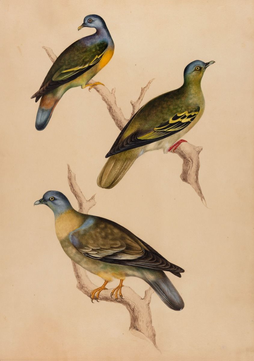 Orange-breasted Green Pigeon (Treron bicinctus) and Yellow-footed Green Pigeon (Treron phoenicopterus)